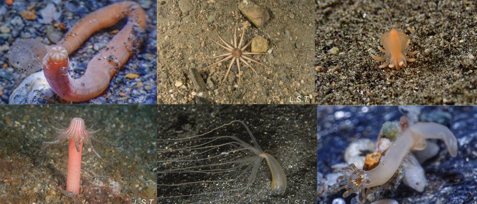 Las especies observadas en nuestro litoral, teniendo en cuenta la poca información y la falta de revisión del género, las dejamos en Halcampoides cf. purpureus y Halcampoides sp.
