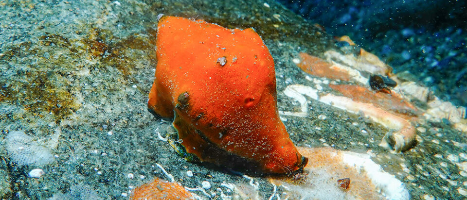 Esponja incrustante de color rojo con el esqueleto perpendicular a la superficie y compuesto por macroscleras de tipo estilo y tilostilo. No presenta microscleras. Observada sobre la concha del molusco Hexaplex trunculus.