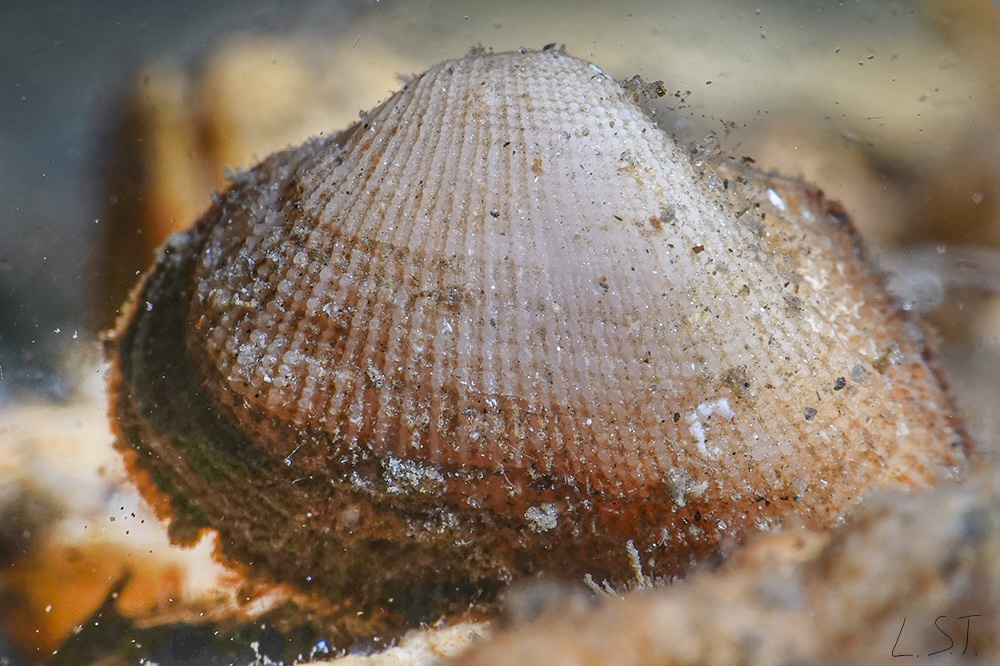 Concha gruesa, algo cuadrangular, de hasta 15 mm, equivalva, inequilateral, con los umbos separados, quedando entre ellos una zona pardo oscura. Charnela taxodonta. Superficie con costillas radiales pequeñas. Color blanco con el periostraco amarillento e Interiormente también blanco . Vive en cavidades de fondos rocosos .